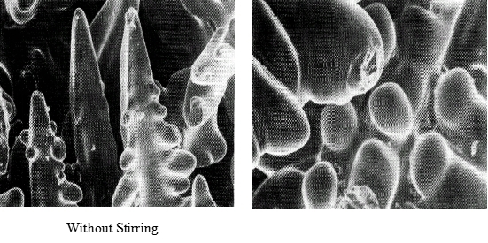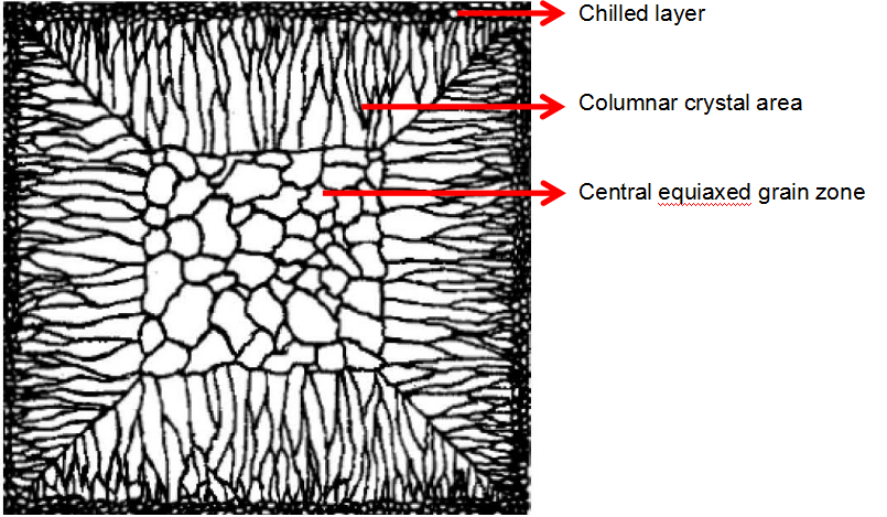 La forte force d'agitation électromagnétique permet à l'acier fondu non solidifié de rincer la fin de la solidification, de couper et de corroder le bras cristallin du cristal colonnaire, formant un grand nombre de fragments de dendrite en tant que noyau cristallin de grain équiaxe, faisant croître le grain multiplié, afin d'inhiber la croissance des dendrites.